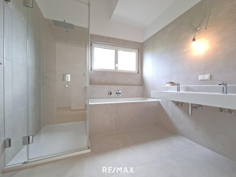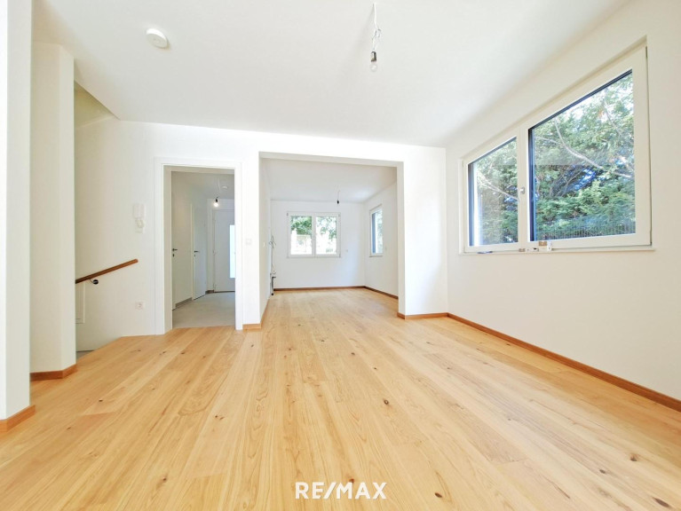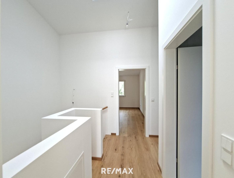 Diese exklusive Doppelhaushälfte wird schlüsselfertig angeboten. Das Haus ist vollunterkellert und bietet eine Wohnnutzfläche von ca. 139 m², verteilt auf drei Etagen. Weitere ca. 23,5 m² Nutzfläche stehen Ihnen im Untergeschoß zur Verfügung. Ein besonderes Highlight ist der westlich ausgerichtete Garten mit 2 großen Terrassen. Das Herz des Hauses bildet der sehr großzügige Wohn-, Ess- und Küchenbereich auf dem Erdgeschoß. Von hier haben Sie direkten Zugang zur Terrasse und über Treppen zu dem Garten. Über eine Vollholzstiege gelangt man in das Obergeschoß, wo sich drei Zimmer sowie ein exklusiv ausgestattetes Badezimmer mit Dusche und Badewanne befinden. Im Untergeschoß steht Ihnen ein geräumiges Zimmer mit Zugang zu der unteren Terrasse und zum Garten zur Verfügung. Des Weiteren gibt es im Untergeschoss ein weiteres Badezimmer mit Dusche und WC.
