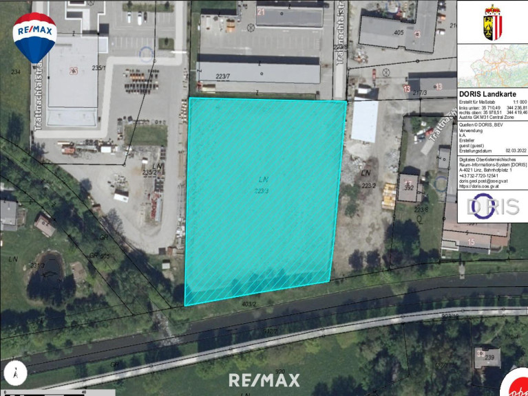 zur B137 und A8 sowie zur Bezirkshauptstadt Grieskirchen. Der angebotene Betriebsgrund liegt inmitten einer großzügigen