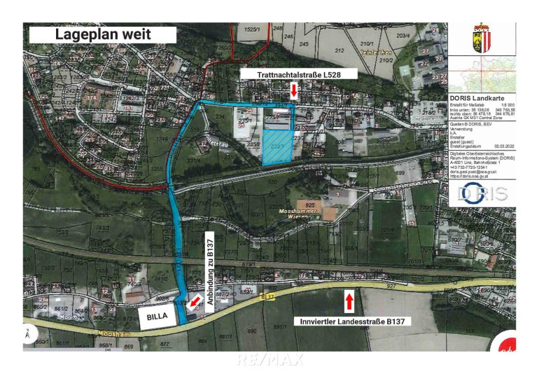Straßenanschluss: B137 ca. 800 m entfernt (Anschluss Billa Einkaufsmarkt)