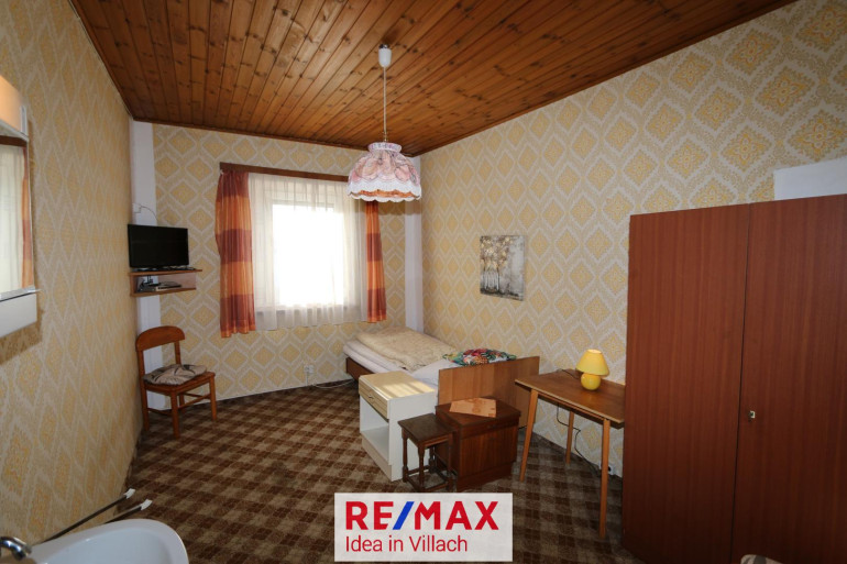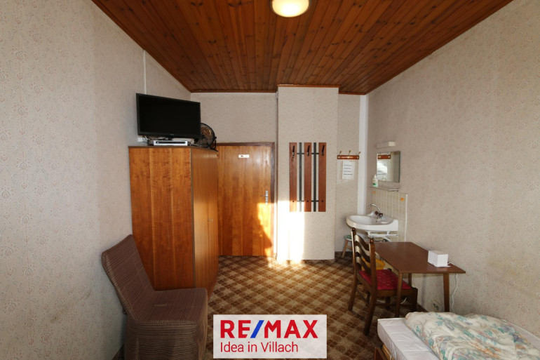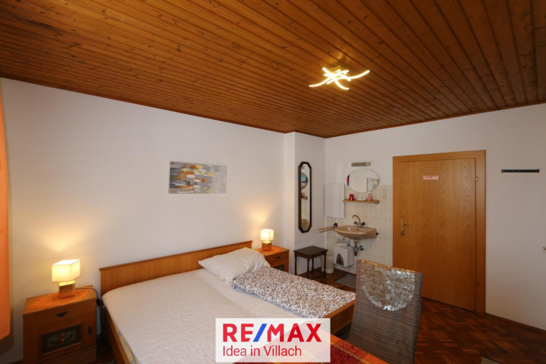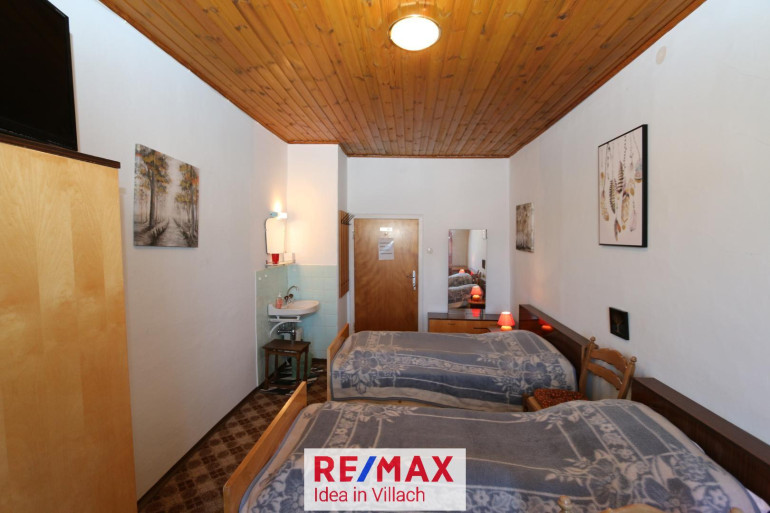 * EG: Flur mit Garderobe, Küche, Wohnzimmer, 2 Zimmer mit Bad (Dusche und WC), 1 Zimmer mit Waschbecken, 1 ehem. Frühstücksraum mit Küche, WC