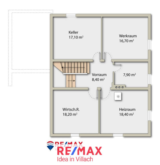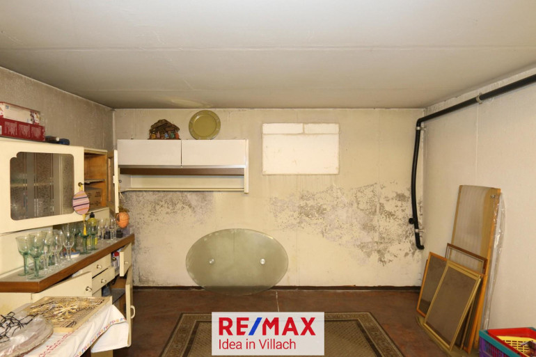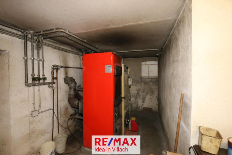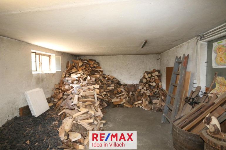 * KG: Vorraum, 2 Lagerräume, 1 alte "Selch" (Räucherkammer), 1 großer Lagerraum (Holz) mit Heiztechnik und Tankraum