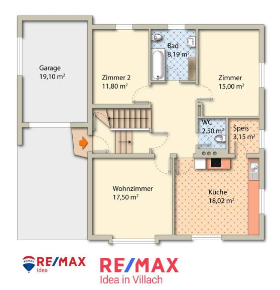 * EG: Vorraum mit Garderobe, Küche mit Speis, Wohnzimmer, 2 Zimmer, Bad mit Badewanne, WC
