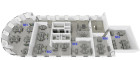 Gemeinschaftsbereiche: Der Gewerbekomplex bietet auch attraktive Gemeinschaftsbereiche, die von den Mietern genutzt werden können. Dazu gehören Lounge-Bereiche für informelle Besprechungen, eine Kantine für Pausen und Networking-Events sowie Konferenzräume für größere Meetings oder Präsentationen. Im gleichen Stockwerk befindet sich außerdem eine voll ausgestattete Teeküche.