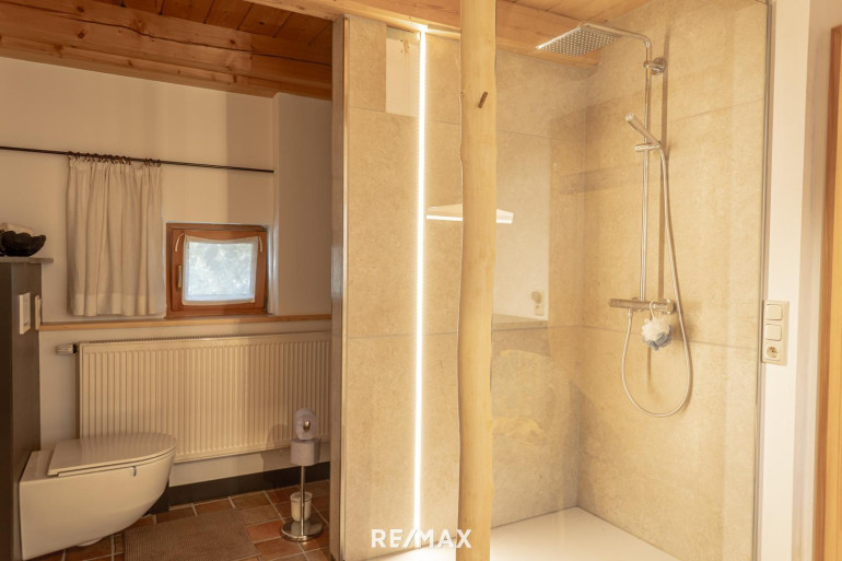 Ein weiterer Vorzug ist die nachhaltige Heizlösung mit einer Hackschnitzelheizung und insgesamt vier Kachelöfen, die in den kalten Monaten für wohlige Wärme sorgen. Das Anwesen verfügt über einen eigenen Brunnen und ist nicht an das öffentliche Kanalsystem angeschlossen, sondern mit einer Senkgrube ausgestattet, was den autarken Lebensstil unterstreicht.