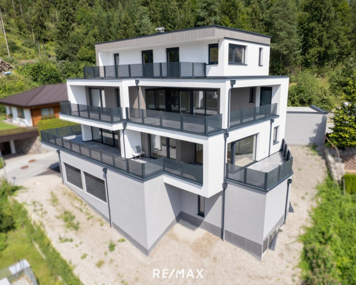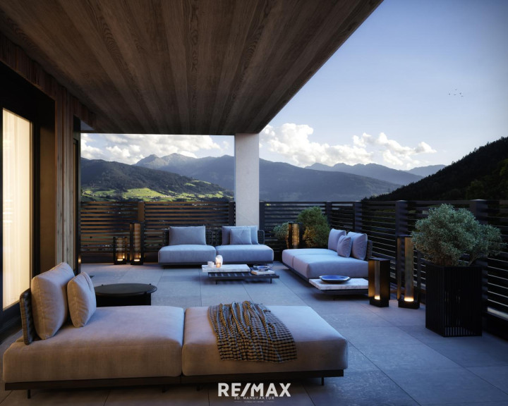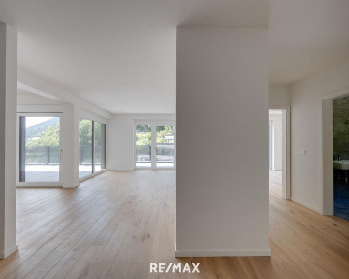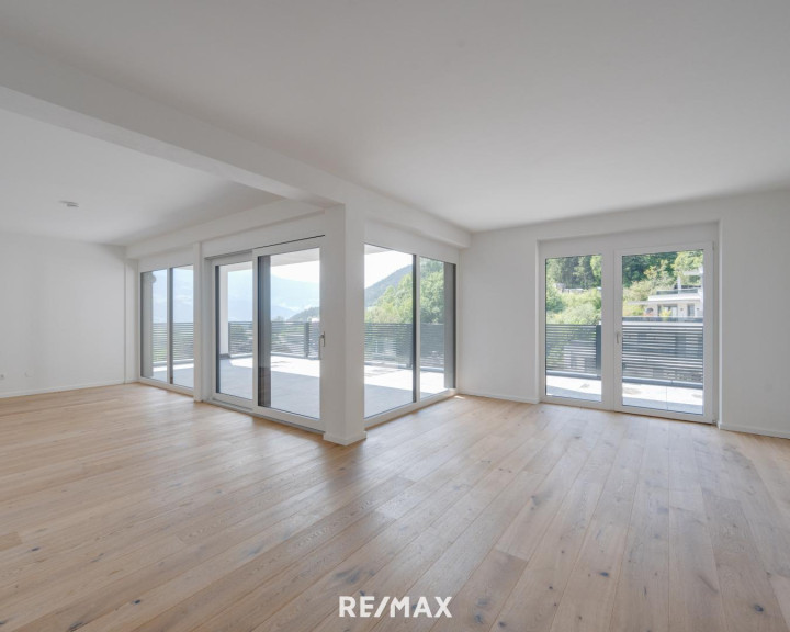 Die hier zum Verkauf stehende Wohnung liegt im ersten Stock und umfasst die gesamte Geschoßebene mit viel Außenflächen, teilweise auch optimal überdacht und somit wettergeschützt. Die Ausrichtung ist süd-westlich und bietet einen wunderschönen Ausbick aufs Inntal und die Bergwelt.