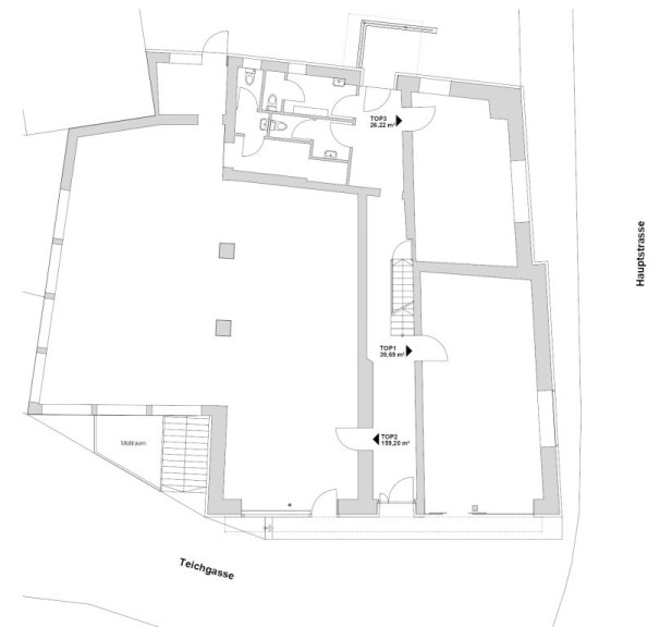 Zwei Geschäftslokale, Fitnessstudio, Bäckerei (Gesamtfläche 225m²)
