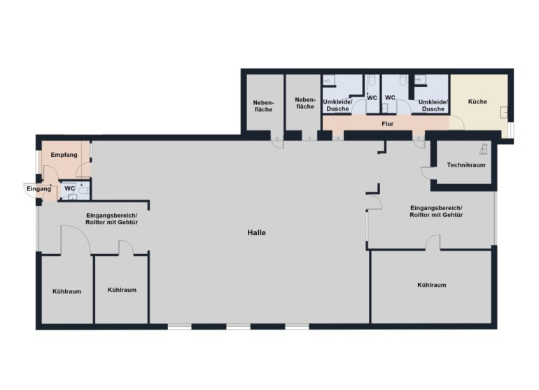 Nebenflächen inkl. WC, Umkleide, Küche und Technikraum ca. 79 m²