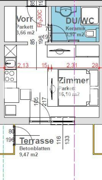 Vorraum, Bad/WC/Du, Wohn/Schlaf-Koch und Essbereich