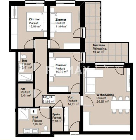 TOP 04 ca. 91,46m² (ca. 13,48m² Terrasse)