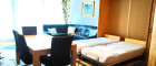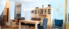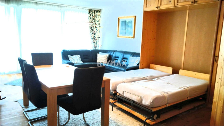 Vorraum, Bad mit Dusche und WC, Wandbetten in einem schönen Holzverbau, offene Küchenzeile, schöner Wohn-Essbereich mit toller Fensterfront (automatische Markisen).