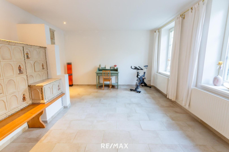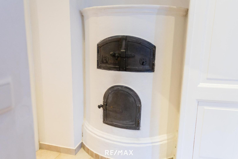Die vorhandenen beiden Kellerräume beherbergen Heiztechnik und Warmwasserspeicher und präsentieren sich mit Gewölbedecken in für das Errichtungsjahr typischer Architektur. Ein Highlight ist der vorhandene „Kachel“-Ofen.