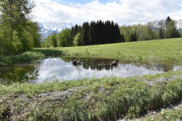 In diesem Naturparadies befindet sich am Wiesengrundstück auch ein angelegtes Biotop.
