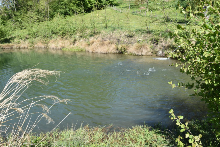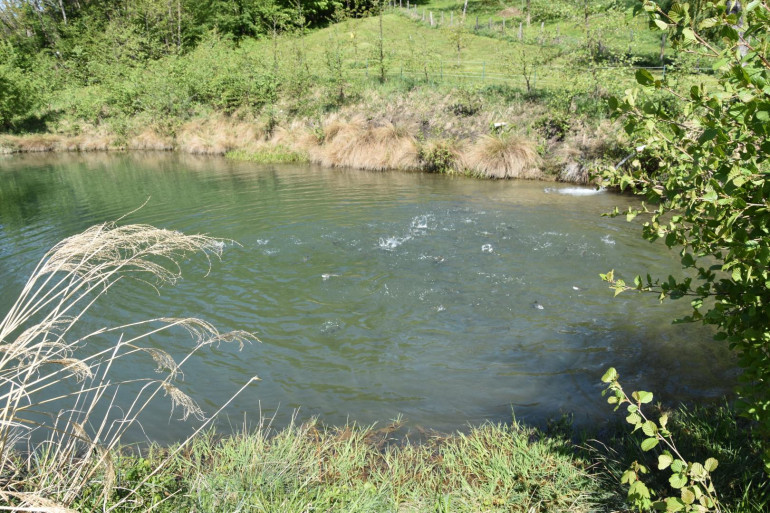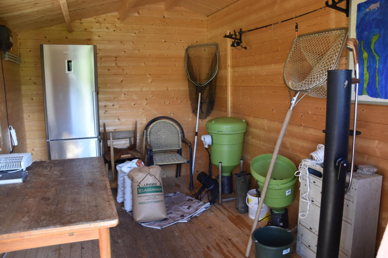 Zur Zeit befinden sich Forellen und Karpfen in den 2 Fischteichen. Insgesamt dürfen in beiden Fischteichen ca. 500 kg Fische gezüchtet werden. Eine Fischausnahmestation sowie zwei Futterautomaten sind vorhanden. Zur Zeit sind laut Angaben des Eigentümers ca. 420 Stück Forellen sowie 220 Stück Karpfen in beiden Teichen vorhanden. Das Wasser für die Fischteiche wird aus den Quellen der Wassergenossenschaft gespeist.