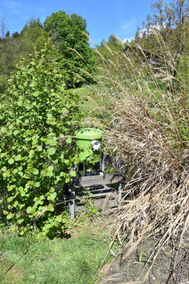 Das Blockhaus ca. 4 x 4 m ist gleichzeitig Arbeits- und Aufenthaltsraum sowie Geräteraum.
