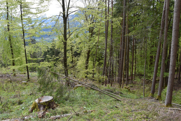 Zur Liegenschaft gehört auch eine vermessene Waldparzelle (Grenzmarkierungen gut ersichtlich) mit ca. 4.406 m², bestehend aus Kiefer-Buchen-, Lärchen- und Fichtenbestand für Nutz- und Brennholzentnahme. Die Waldparzelle weist einen gemischten Altersbestand auf. Von Jungkultur bis Erntestämme, Bringung über Forstweg.