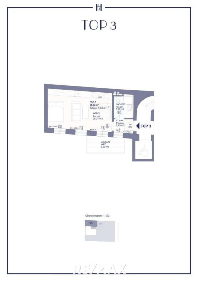 Top 3 1.OG Belle Etage mit Balkon ca. 32 m² ca. 6 m² EUR 349.000,00