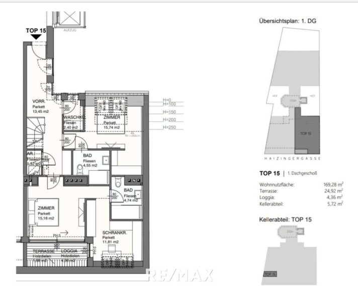 Top 15 1.DG (Loggia + Terrasse) + 2.DG (Wohnterrasse) ca. 170 m² ca. 25 m² ca. 4 m² EUR 1.599.000,00 incl. Garagenplatz