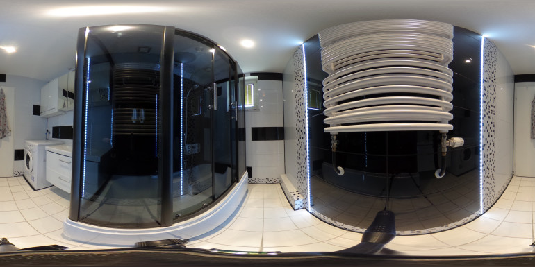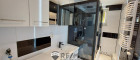 Hochwertiges Badezimmer mit Badewannenkabine (Regendusche, Massagedüsen, Beleuchtung). Ein Fenster im Bad ist auch vorhanden was sehr vorteilhaft ist.