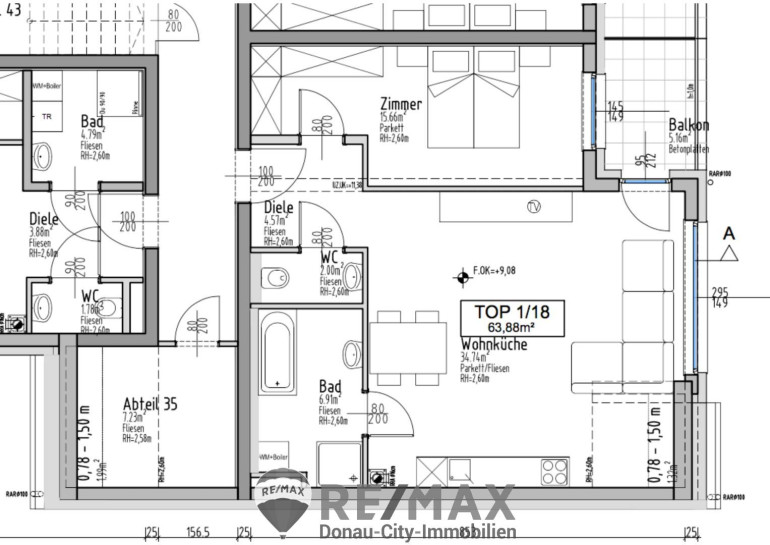 Die neuwertige 2 Zimmer Wohnung mit 64m² Wohnfläche präsentiert sich lichtdurchflutet, gut durchdacht und mit charmantem Wohnambiente. Über das zentrale Vorzimmer gelangt man in die separate Toilette sowie weiter in das Schlafzimmer mit 15,66m² sowie vis a vis in das großzügig angelegte Wohn- Esszimmer mit 35m² und direktem Zugang auf den Balkon mit 5m². Dahinter befindet sich das geräumige Badezimmer bei einer Größe von 7m². Der hofseitige Garten dient als Allgemeinfläche und kann selbstverständlich mitbenutzt werden.