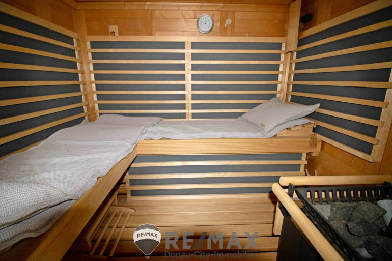 - 3 Badezimmer: luxuriös mit Sauna, Regendusche, Badewanne und Doppelwaschbecken.