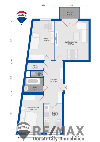 Etage: 2. Stock ohne Lift Baujahr: 1966 Wohnfläche: 75 m² Zimmer: 3 (2 Schlafzimmer, 1 großes Wohnzimmer)