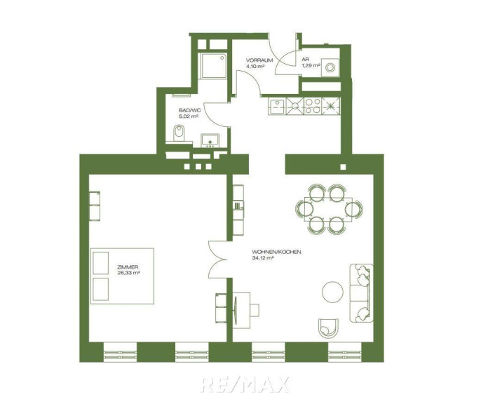 Volle Möblierung zur Eignung für eine kurz- und mittelfristige Vermietung.