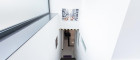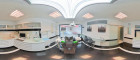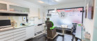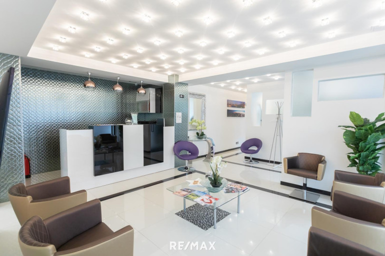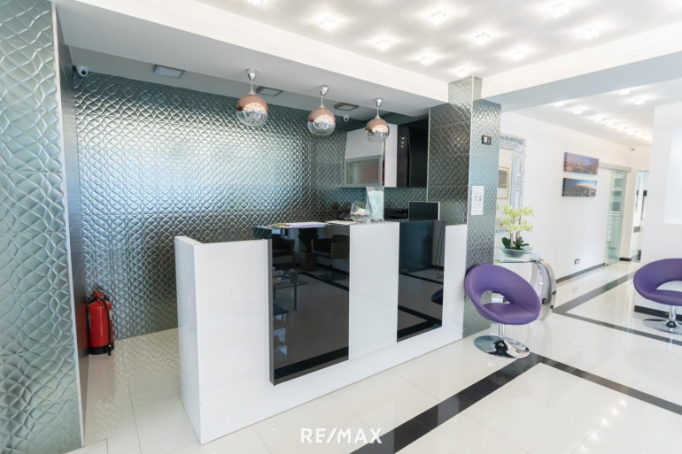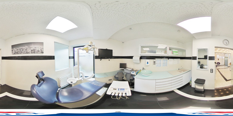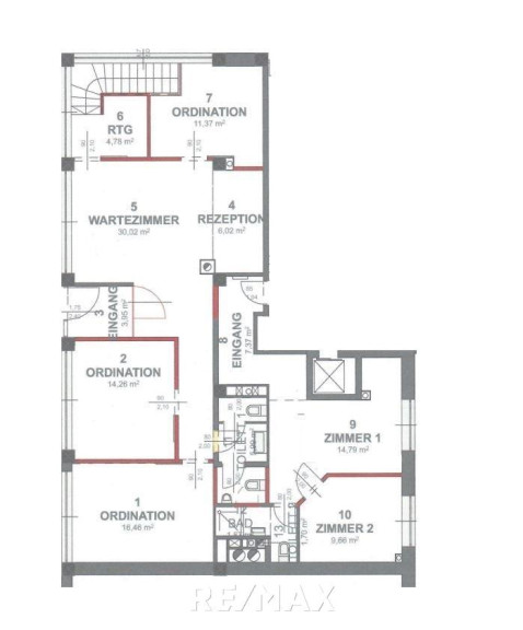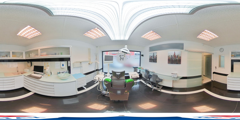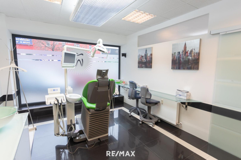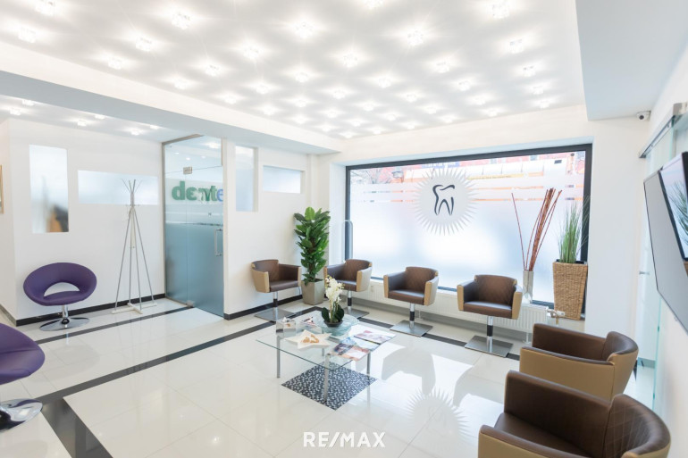 Die Rezeption ist vis a vis vom Eingang und ein geräumiger Wartebereich steht den Patienten zur Verfügung. Die notwendigen Installationen wurden genau auf den Betrieb einer Praxis im Lokal abgestimmt.