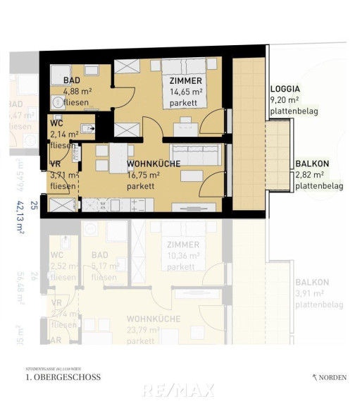 Die Wohnungen haben eine Größe zwischen ca. 39 und 62 m² mit zwei bzw. drei Zimmer, modernen Grundrissen und Freiflächen (Garten, Loggia, Balkon oder Terrasse).