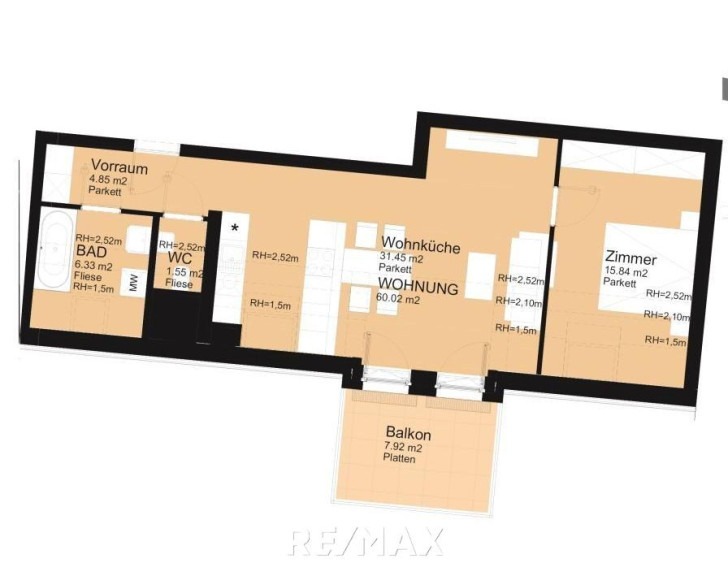 Beispielwohnung: Zwei-Zimmer-Balkonwohnung mit ca. 60 m²: