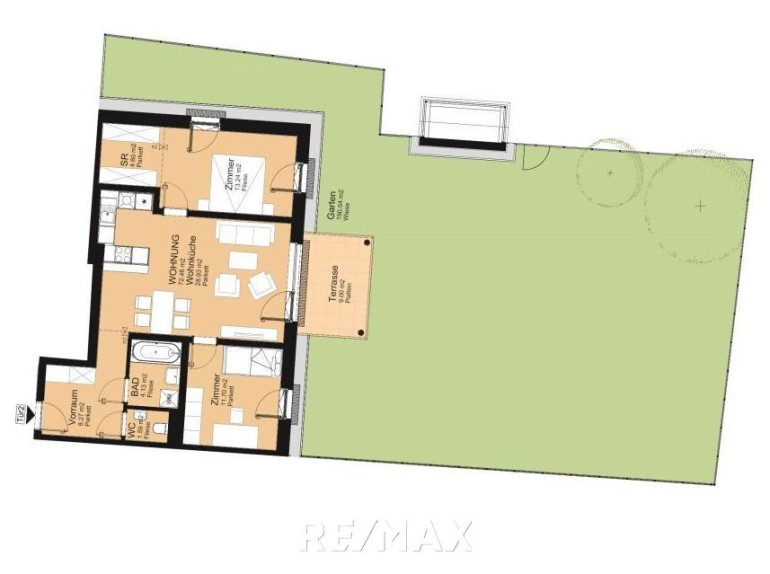 Beispielwohnung: Drei-Zimmer-Gartenwohnung mit ca. 72 m²: