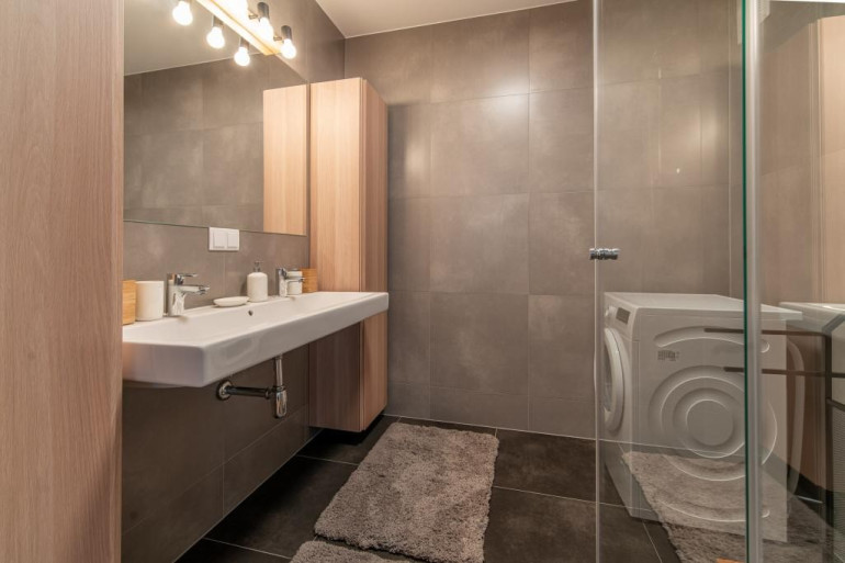 Also the bathroom has been fitted completely: ample storage, washing machine, even a clothe dryer is supplied!!