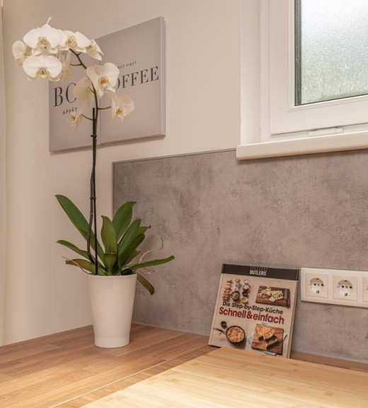 Selbstverständlich mit einer modernen Küche ausgestattet, mit vollständigem Wohnbereich, einladendem Schlafabschnitt und natürlich der grandiosen Terrasse mit Grünblick und viel Platz zum durchatmen!