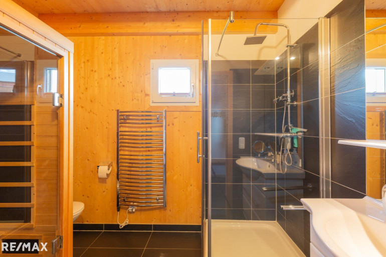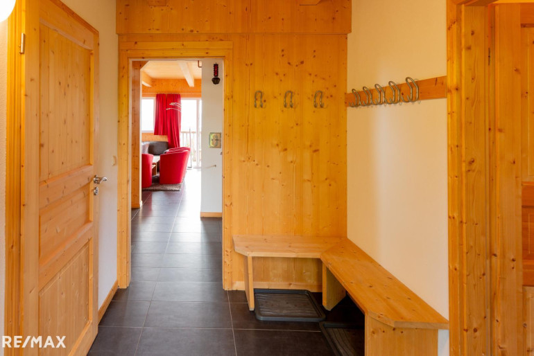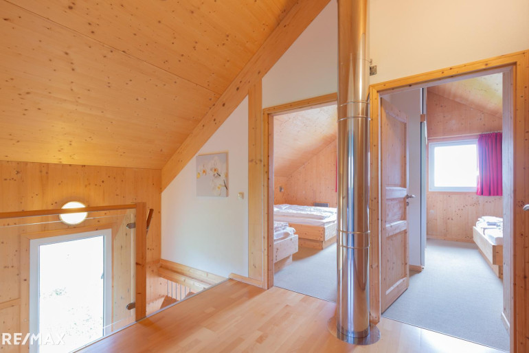 Die Raumaufteilung ist optimal: Im Erdgeschoss finden Sie einen großen, offenen Wohn-/Essbereich mit angrenzender Küche und großer Terrasse mit Blick ins Tal. Weiters stehen ein Abstellraum und ein Badezimmer mit Infrarotkabine und WC im Erdgeschoss zur Verfügung.