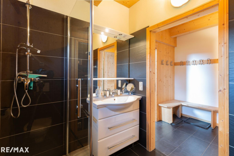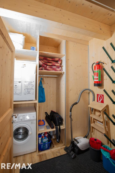 Genügend Stauraum für alle Sportgeräte und Dinge des täglichen Bedarfs findet man nicht nur im Abstellraum im Haus, der u.a. auch Platz für einen zweiten Kühlschrank, Skischuhwärmer und eine Waschmaschine bietet, sondern auch in der außengelegenen Storage-Box, die für Gartenmöbel, Griller, Räder etc... optimal geeignet ist. Drei Autos können bequem auf dem eigenen Grundstück parken.