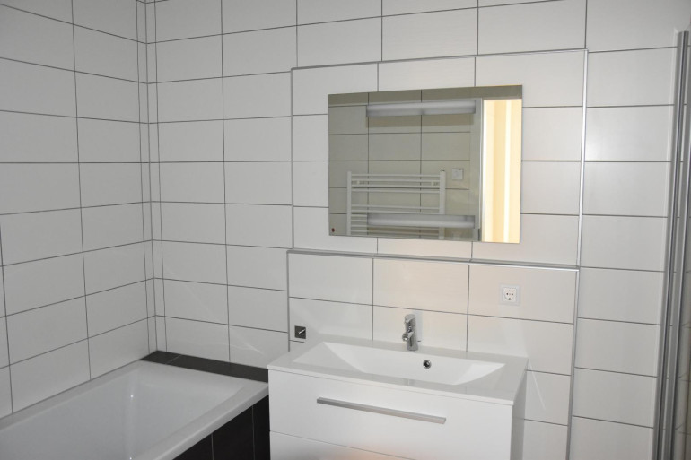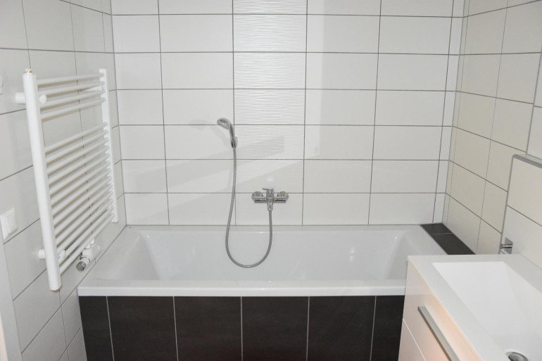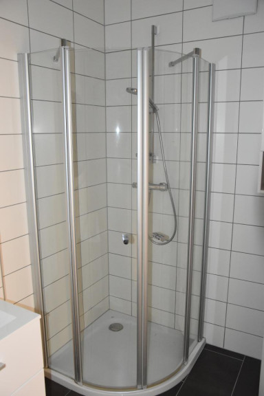 Die Wohnung gliedert sich in einen geräumigen Eingangsbereich, drei Schlafzimmer, ein Bad mit Dusche und Badewanne und Waschmaschinenanschluss, ein Bad mit Dusche und WC und ein separates WC.