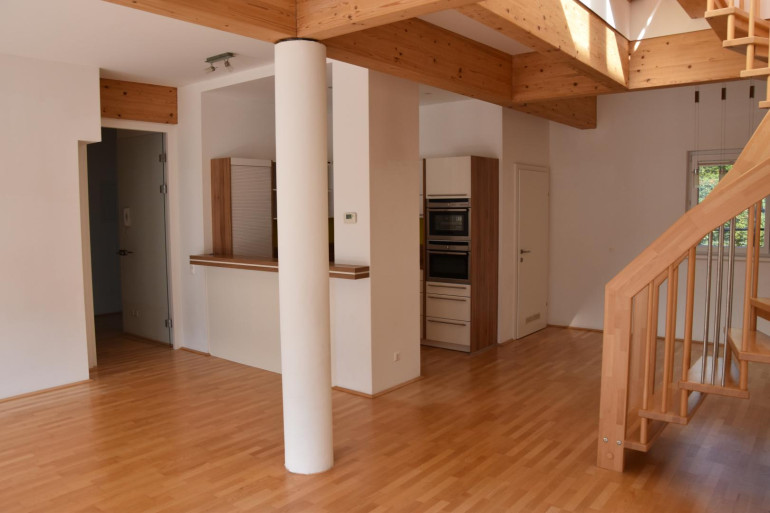 Diese Penthousewohnung überzeugt mit einem großen Küchen-, Ess- und Wohnbereich und einem allgegenwärtigen traumhaften Ausblick auf das Goldeck. Die ca. 12 m² große Loggia ist der ideale Platz für erholsame Stunden (kann auch als Wintergarten ausgebaut werden).