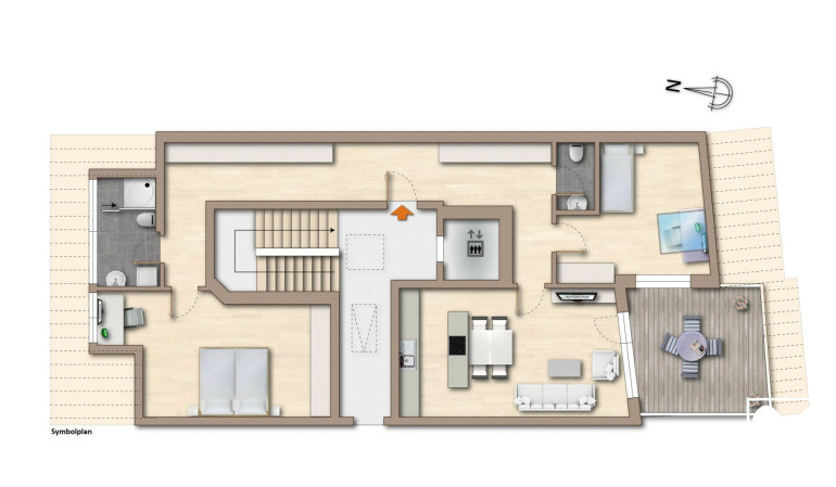 Die Wohnnutzfläche von ca. 97 m² bietet eine großzügige Raumaufteilung, eine großzügige Terrasse mit ca. 14 m² rundet das Angebot ab.