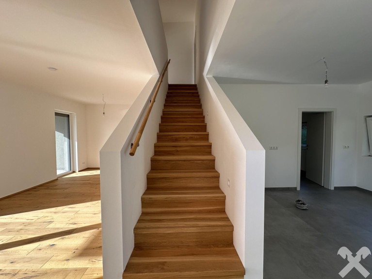 Edle Bodenbeläge wie Massivparkett und Feinsteinzeug, elektrischer Sonnenschutz, hochwertige 3-fach verglaste Fenster/Schiebetüren lassen auch in der Ausstattung keine Wünsche offen.