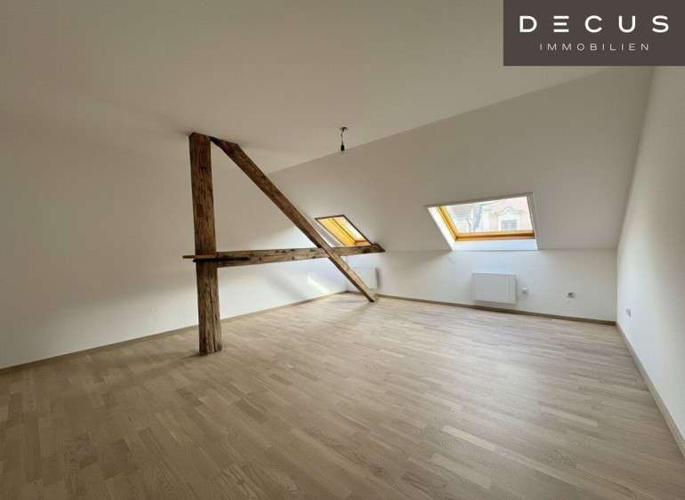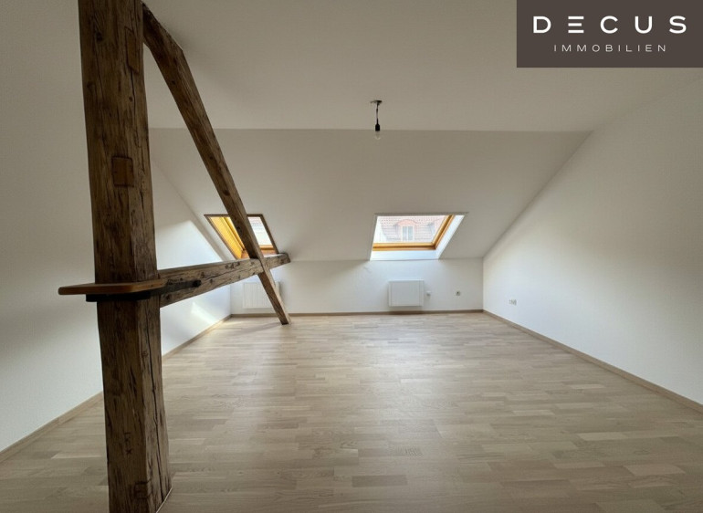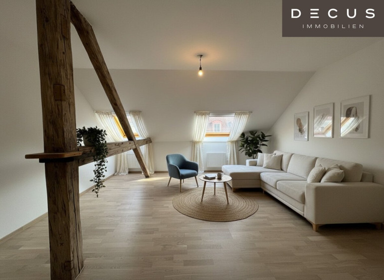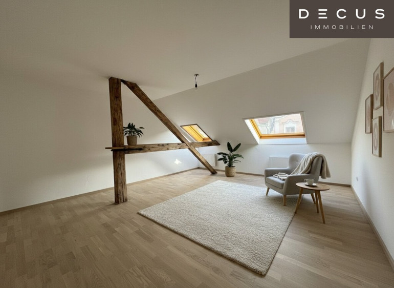 Besonders hervorzuheben ist der einzigartige Wohncharakter, der durch die Dachflächenfenster und die sichtbaren Holzbalken entsteht. Diese Kombination verleiht der Wohnung eine warme, gemütliche Atmosphäre und einen unverwechselbaren Altbaucharme.
