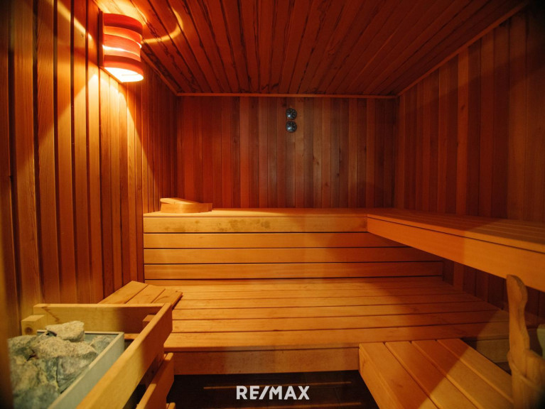 Für Ihre Entspannung steht Ihnen eine Sauna zur Verfügung, die im Untergeschoss eingebaut ist. Zusätzlich verfügt das Anwesen über eine Garage mit 2 Stellplätzen, die direkt an das Haus anschließt.
