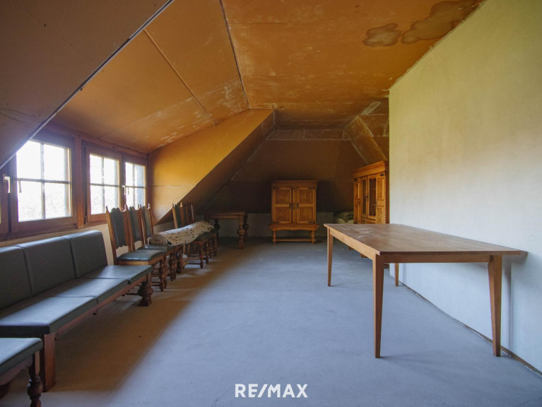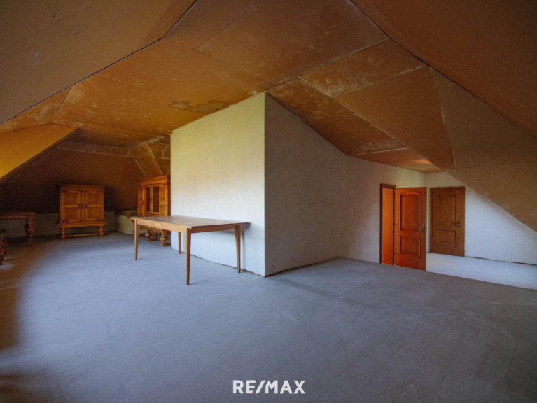 Das Obergeschoss des Hauses ist noch nicht vollständig ausgebaut und bietet somit vielfältige Gestaltungsmöglichkeiten. Ob Sie eine Kanzlei, ein Büro oder zusätzlichen Wohnraum schaffen möchten – hier ist ausreichend Platz für Ihre individuellen Ideen.