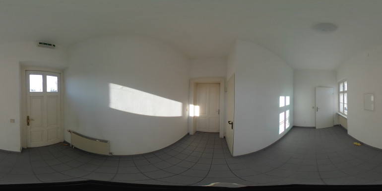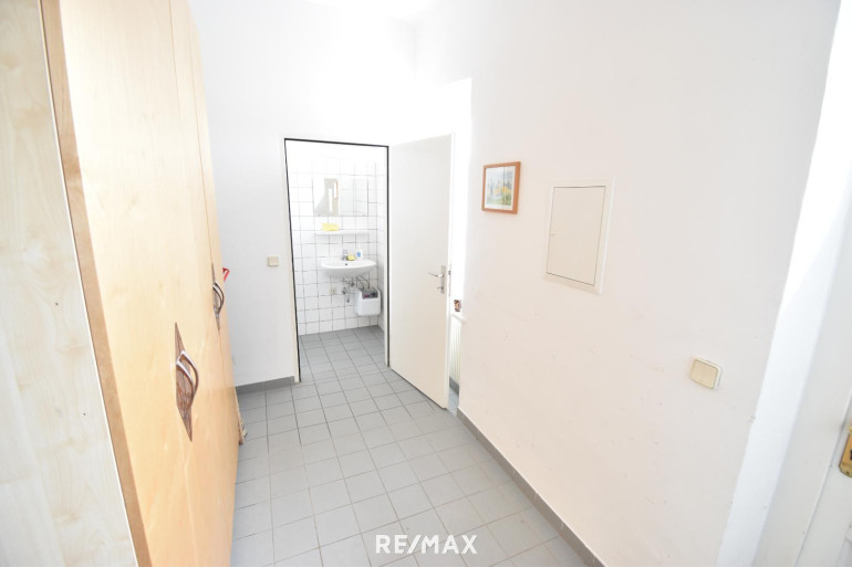 Die 62,43 m² Bürofläche befindet sich im Erdgeschoss und ist über zwei Stufen im Eingangsbereich des Hauses zu betreten.