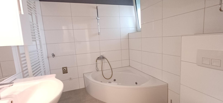 Bad mit Handtuchwärmer, Eckbadewanne, Mobiliar, Fenster