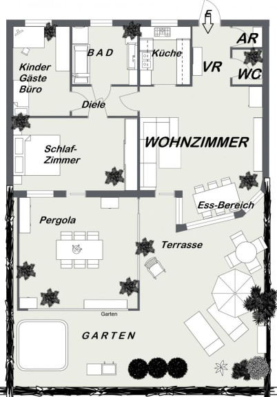 Ausreichend Grünflächen und Spielgärten der näheren Umgebung vorhanden.