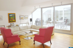 Diese exklusive Dachgeschoß-Wohnung beeindruckt durch ihre traumhafte Aussicht, eine gefällige Raumaufteilung und verbindet harmonisch modernes Design mit praktischer Funktionalität.