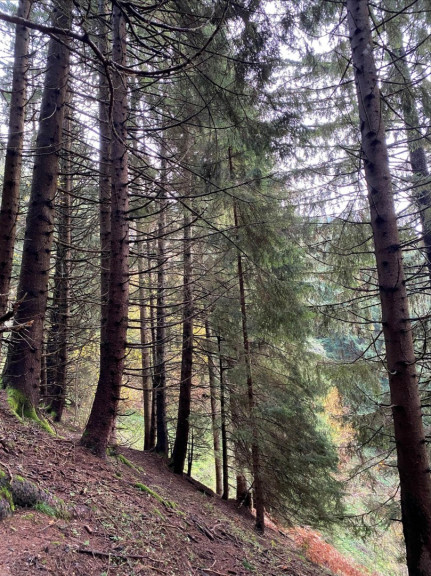 Es ist ein mittlerer Holzbestand (Fichte, Lärche) vorhanden:
