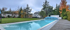 Der Pool in der Gartenanlage ist überdacht und beheizt. Eine automatische Dosieranlage sowie ein Reinigungsroboter sorgen für Sauberkeit.