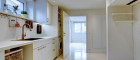 Hauswirtschaftsraum mit großem Waschbecken und Anschlüssen für Waschmaschine und Trockner