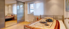 Desweitern befindet sich in diesem Gebäudeteil ein exklusives Schlafzimmer, ausgestattet mit Tresor und elektrischen Fliegengitter, sowie einem Zugang zum Garten und eine geräumige Ankleide.