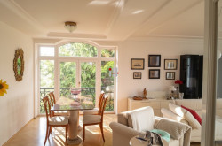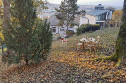 Der Garten, umgeben von einer grünen Oase, lädt zum Entspannen und Verweilen ein. Genießen Sie die Sonne auf einem der zwei Balkone oder auf den beiden Terrassen, während Sie den herrlichen Ausblick auf die Berge, die Stadt und die umliegende Natur bewundern. Hier finden Sie den perfekten Ort, um die Seele baumeln zu lassen und die Hektik des Alltags hinter sich zu lassen.
